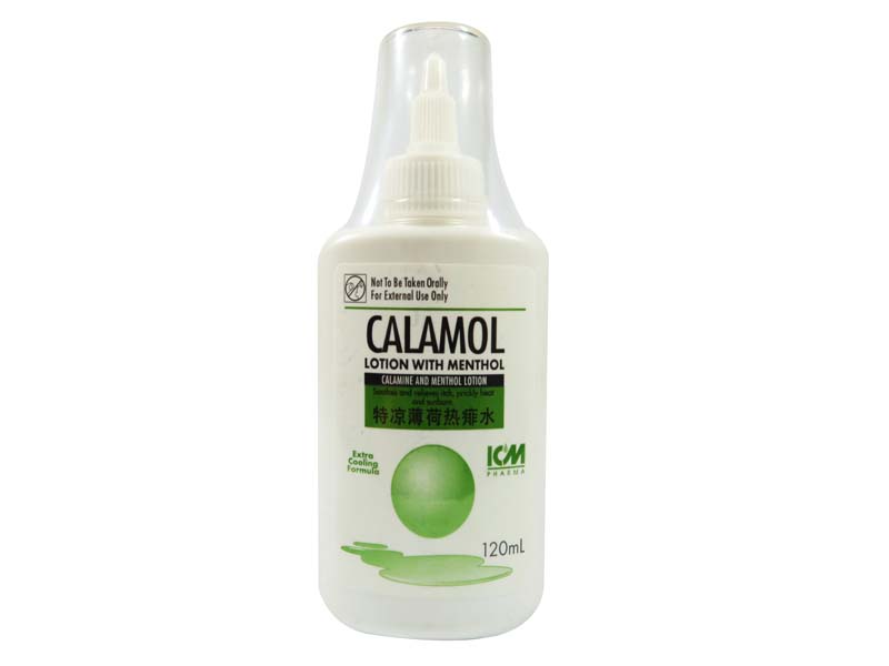 Calamol lotion with menthol soothes and relieves the itch of insect bites, rashes, chickenpox, painful sunburn, acne and other minor skin irritations. Calamine has a mild astringent action and menthol gives an extra cooling effect on the skin when it is needed.