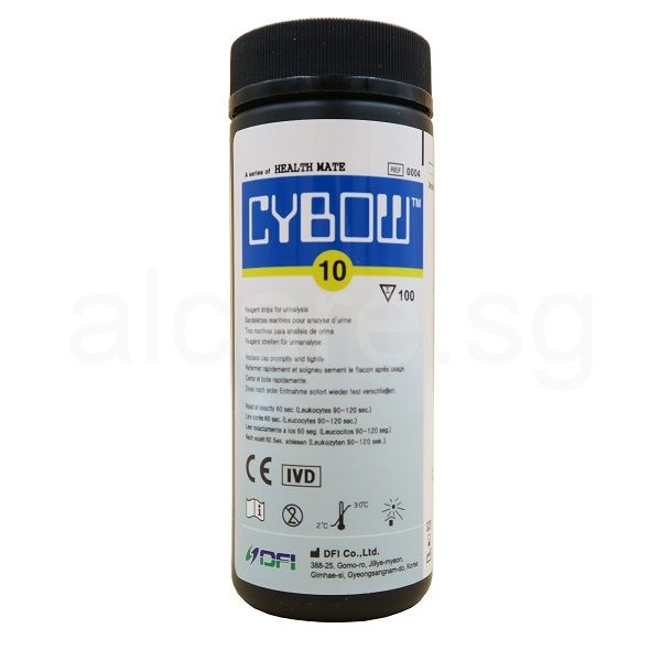 Dip the strip into the urine up to test area for no more than 2 seconds. Remove excess urine as excessive urine may cause the interaction of chemicals between adjacent reagents pads. Parameters for Cybow 10 test strips: Urobilinogen, Glucose, Bilirubin, Ketones, Specific Gravity, Blood, pH, Protein, Nitrite and Leukocytes. Store in a cool, dry place. Do not store in a refrigerator or freezer. Store away from moisture and light. Replace the bottle cap immediately and tightly after removing test strips and keep the bottle tightly closed between tests.