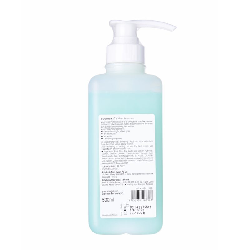 Esemtan® skin cleanser is gentle, soap-free that comes with a pleasant fragrance and delicate colour. Allantoin, a non-irritating ingredient is added that soothes and protects the skin. It also has the ability to help heal the skin and stimulate the growth of new tissue. esemtan® skin cleanser. a great all-rounder for keeping the skin healthy, making it suitable for all skin types including sensitive skin.
