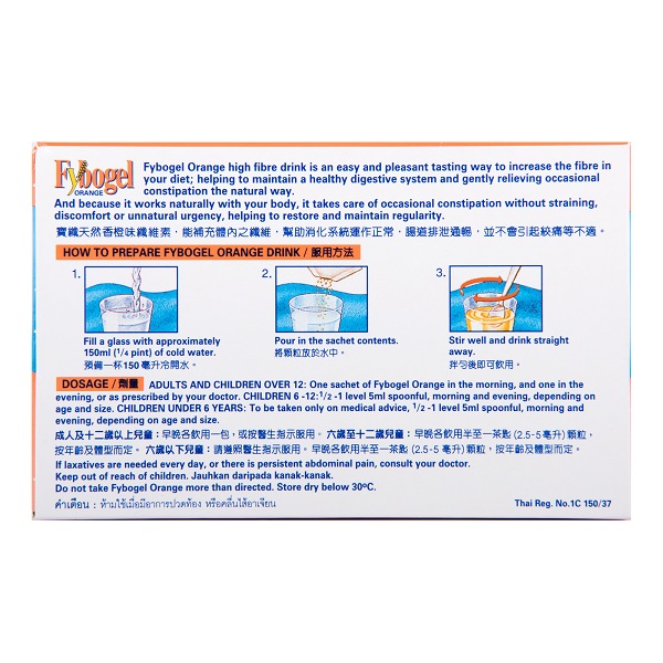 Each dose of Fybogel granules must be stirred into a glass containing at least 150ml water. Drink it all as soon as the fizzing dies down and all the granules have dissolved. While you’re taking Fybogel it’s important to make sure you drink enough liquid throughout the day, otherwise there’s a risk of it causing a blockage in your gut.