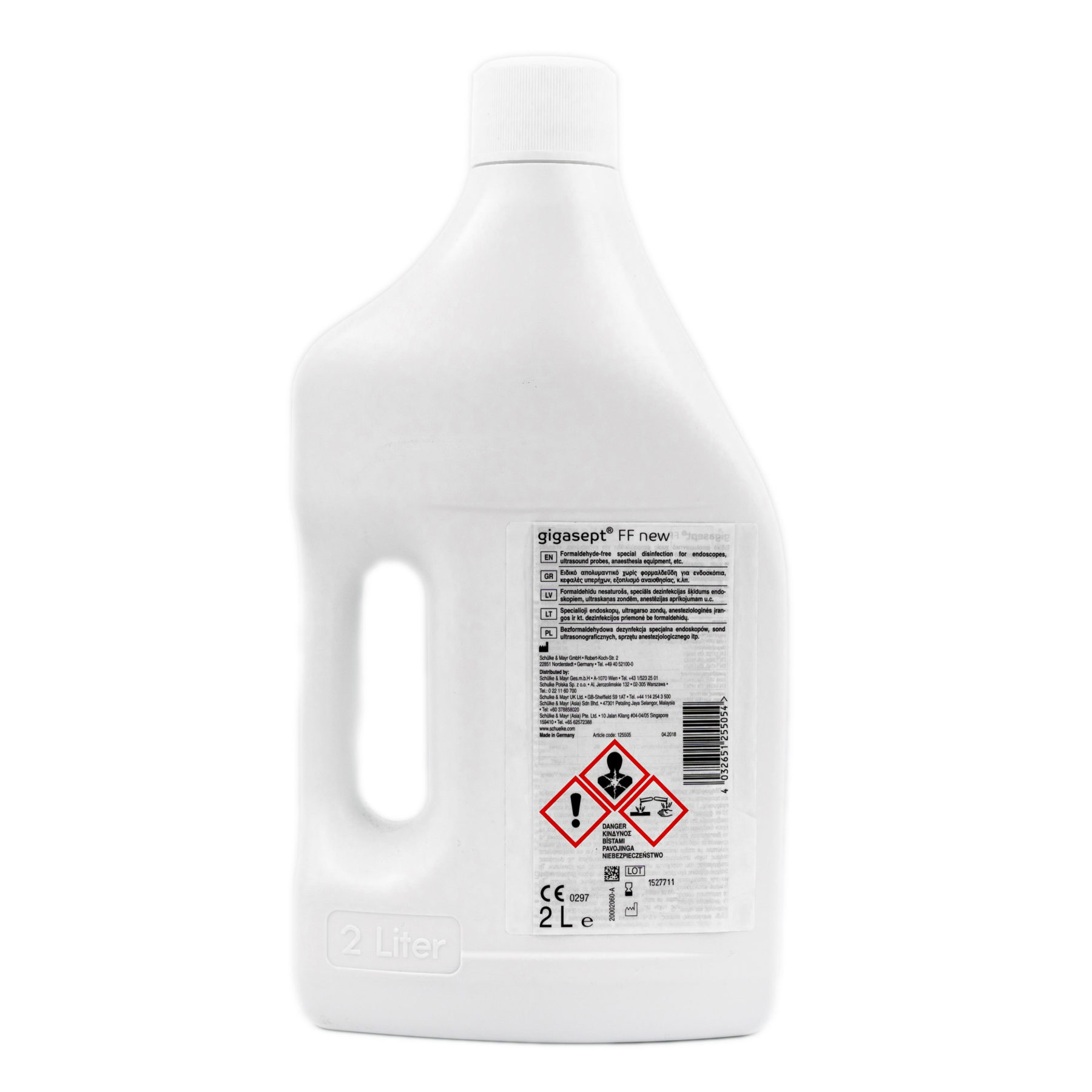 For the manual disinfection and precleaning/disinfection of surgical instruments and sensitive medical instruments. Particularly suitable for heat sensitive and heat resistant endoscopes (flexible and rigid) and ultrasonic probes. Apart from the manual treatment of endoscopes and instruments, gigasept® FF (new) is also suitable for semi-automated and fully automated machines that operate by a cyclic process at room temperature.