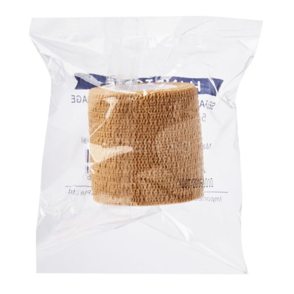 A self-adherent elastic wrap that functions like a tape, but sticks only to itself. Useful in overwrap for splints, support sprains and strains. It can be used to provide medium compression and secure dressings.