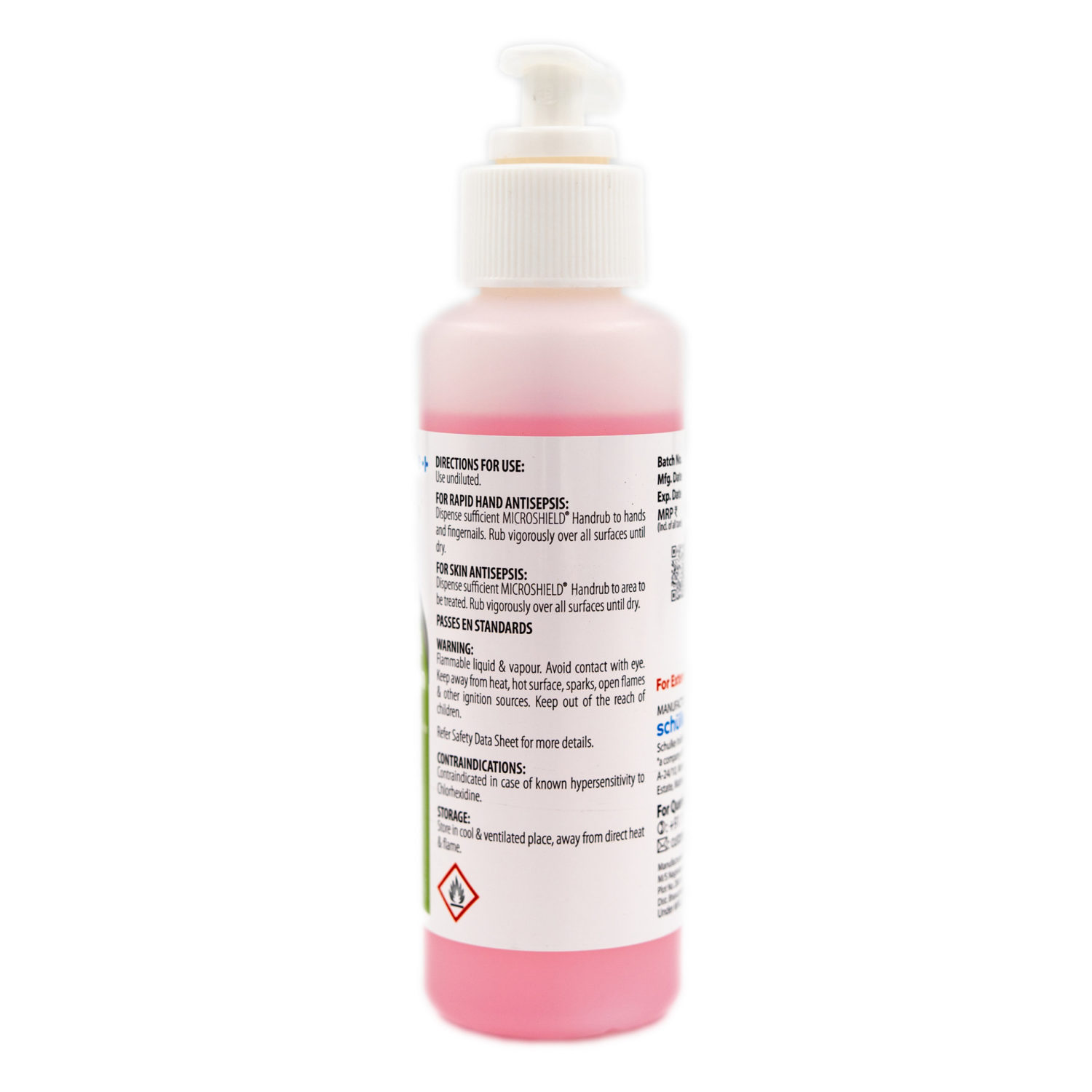 – Dispense sufficient MICROSHIELD® Handrub to wet area to be treated. Rub vigorously over all surfaces until dry.