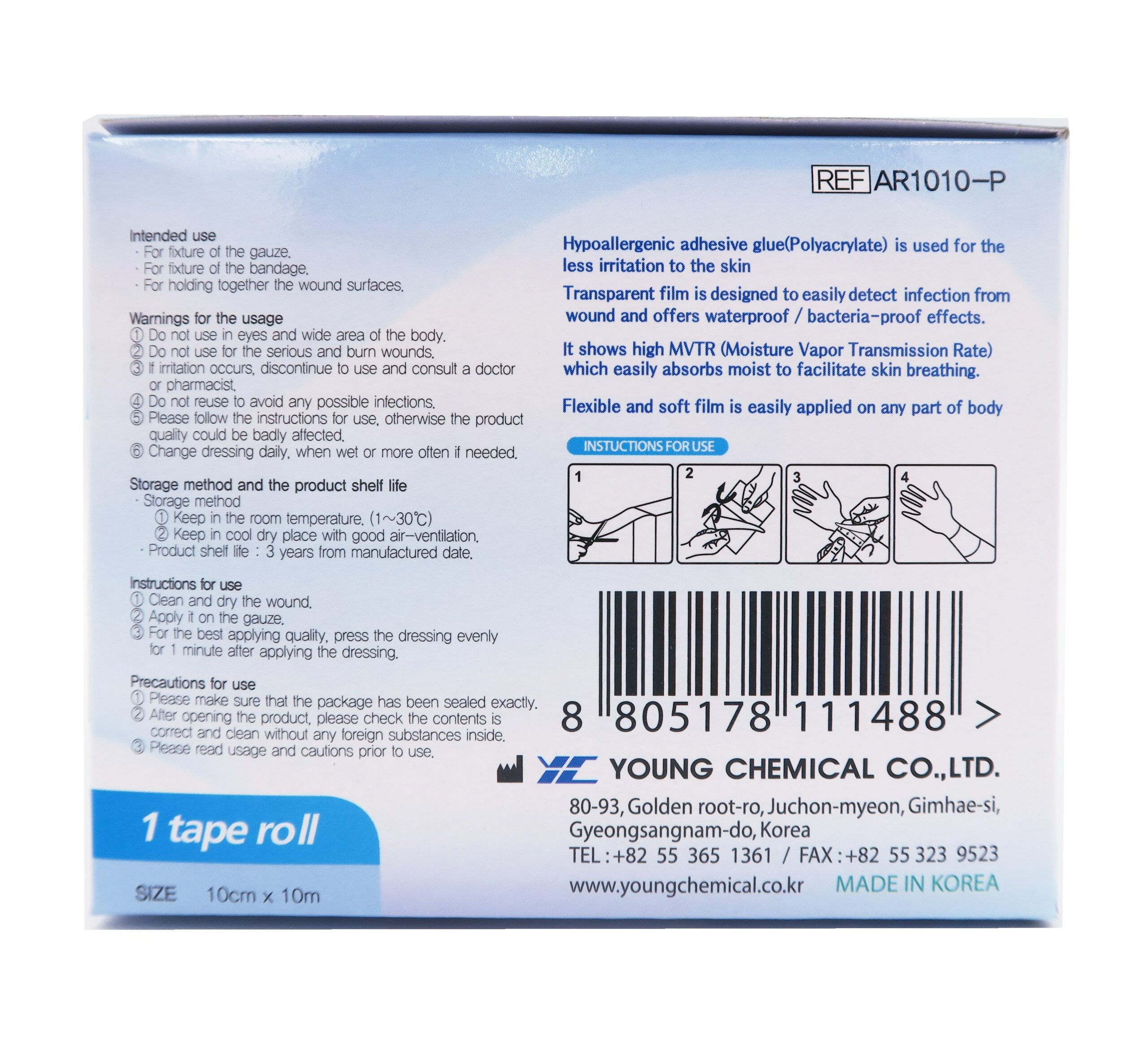 • Transparent film is designed to easily detect infection from wound and offers waterproof / bacteria-proof effects.