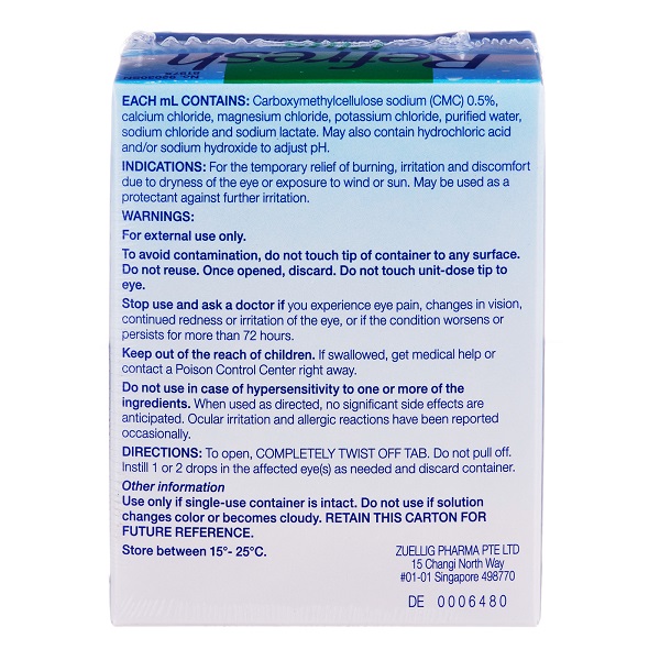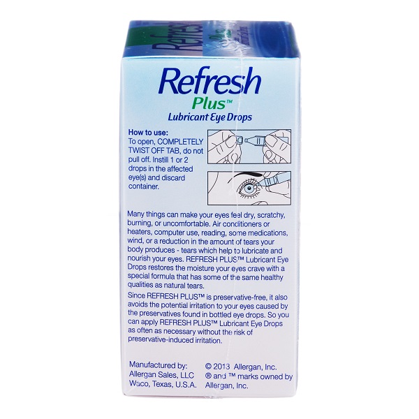 Directions: To open, completely twist off tab, do not pull off. Instil 1 or 2 drops in the affected eye(s) and discard container. Discard after 12 hours of opening even if there are remaining eye drops.