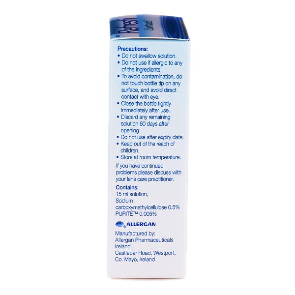 Ingredients: Carboxymethylcellulose sodium 0.5% with: boric acid, calcium chloride, magnesium chloride, potassium chloride, purified water, PURITE (stabilized oxychloride complex), sodium borate and sodium chloride.